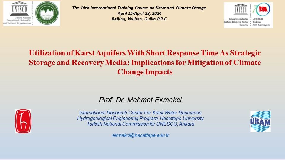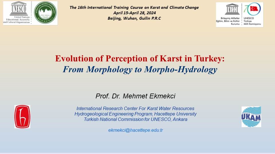 HÜ-UKAM Müdürü Prof. Dr. Mehmet EKMEKÇİ ve Dr. Öğr. Üyesi Şükran AÇIKEL, UNESCO Himayesinde Uluslararası Karst Araştırma Merkezi tarafından 15-27 Nisan 2024 tarihleri arasında düzenlenen 16. Uluslararası Karst ve İklim Değişikliği Kursunda dersler vermişlerdir.